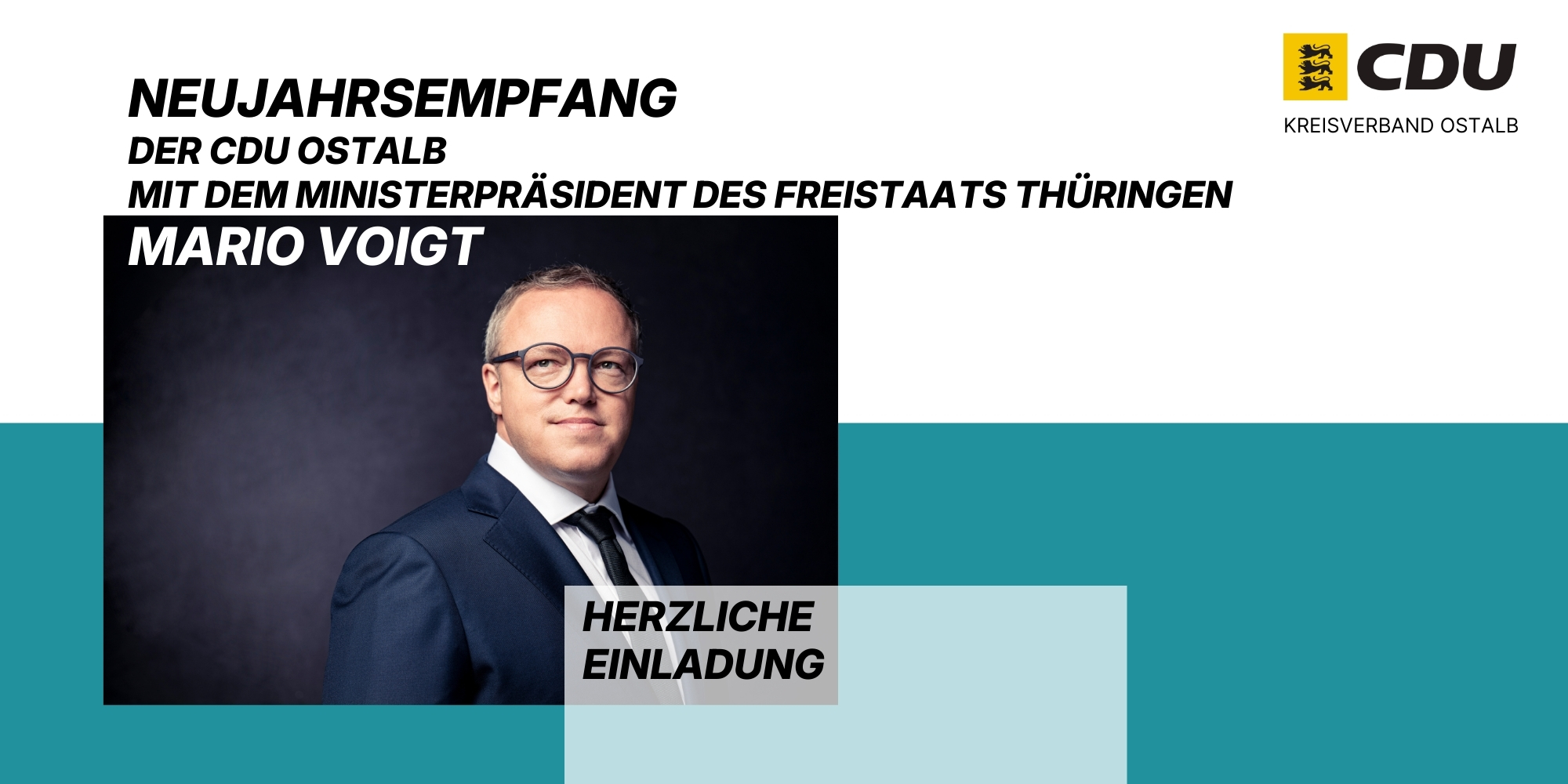 Herzliche Einladung zum Neujahrsempfang der CDU Ostalb zu dem wir am 8. Januar 2026 Mario Voigt, Ministerpräsident des Freistaats Thüringen, in der Scheerer-Mühle in Oberkochen begrüßen dürfen. Er kommt auf Einladung des Landtagsabgeordneten Winfried Mack in den Ostalbkreis.