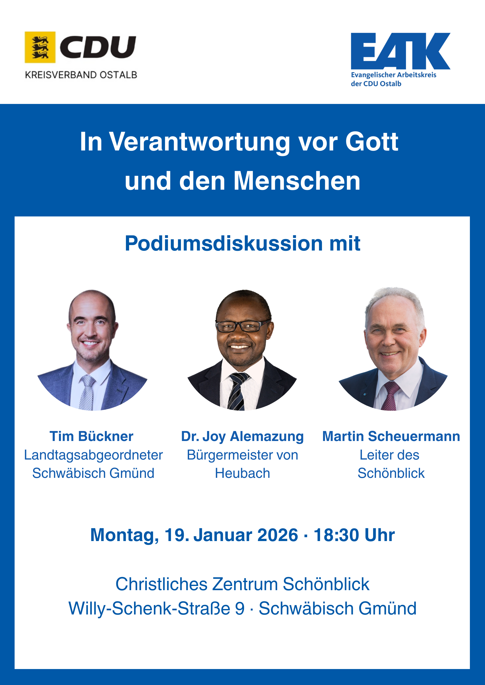 Der EAK Ostalb lädt zu einer öffentlichen Podiumsdiskussion ein. Thema ist der erste Satz der Präambel des Grundgesetzes: